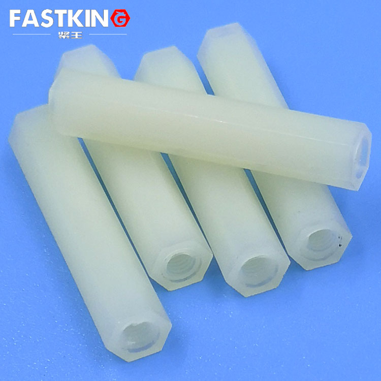 When using the PA66 white nylon hexagonal spacer nut, attention should be paid to selecting the appropriate specification and type according to actual needs. First, the cylinder length should be selected based on the component spacing—common specifications such as 5mm, 8mm, and 10mm—to ensure the reserved gap meets heat dissipation or assembly requirements. Second, the thread type should be chosen according to the connection method: the internal thread type is suitable for fixing upper-layer components, the external thread type for base connection, and the internal-external thread type for connecting double-layer components. Finally, the cylinder diameter should be selected based on the mounting hole size—thread specifications such as M3, M4, and M5—to avoid assembly looseness caused by mismatched sizes. During installation, the tightening force should be controlled: excessive force may cause the PA66 nylon to break. It is recommended to use a torque wrench and operate in accordance with the material's torque standard (usually 0.5-2N・m). After long-term use, the spacer nut should be regularly inspected for cracks or deformation; if damage is found, it should be replaced in a timely manner to prevent component looseness and subsequent failures.